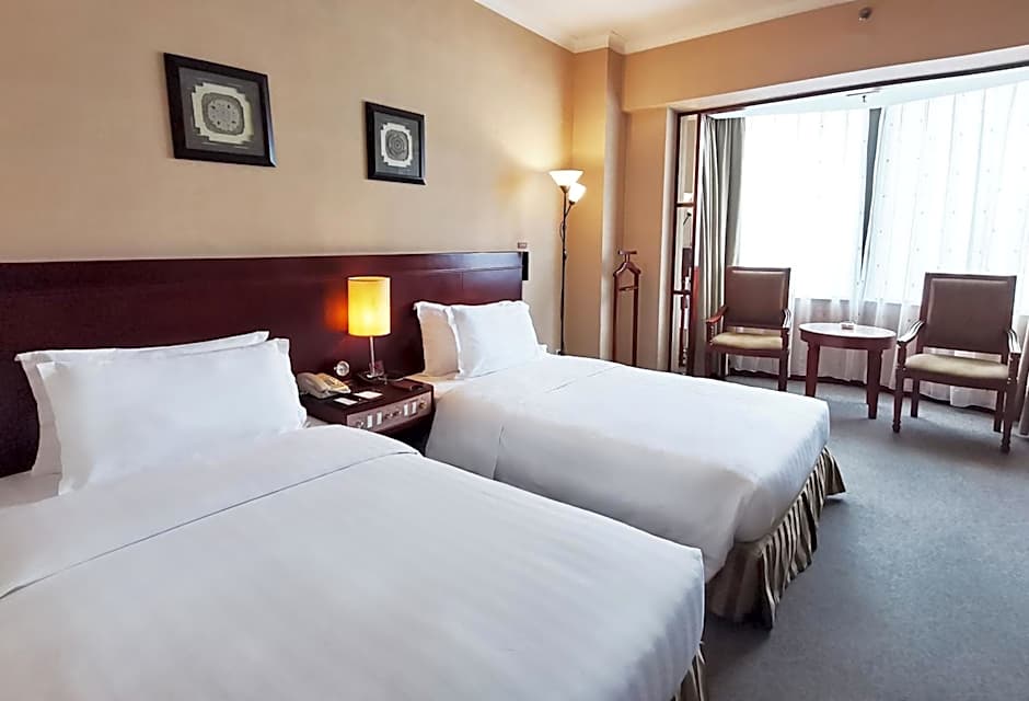 Indulge in comfort in our Executive Twin Room with 291 sqft of space, featuring two twin beds, air conditioning, a bathtub, and complimentary toiletries. Ideal for 2 adults and 1 child.